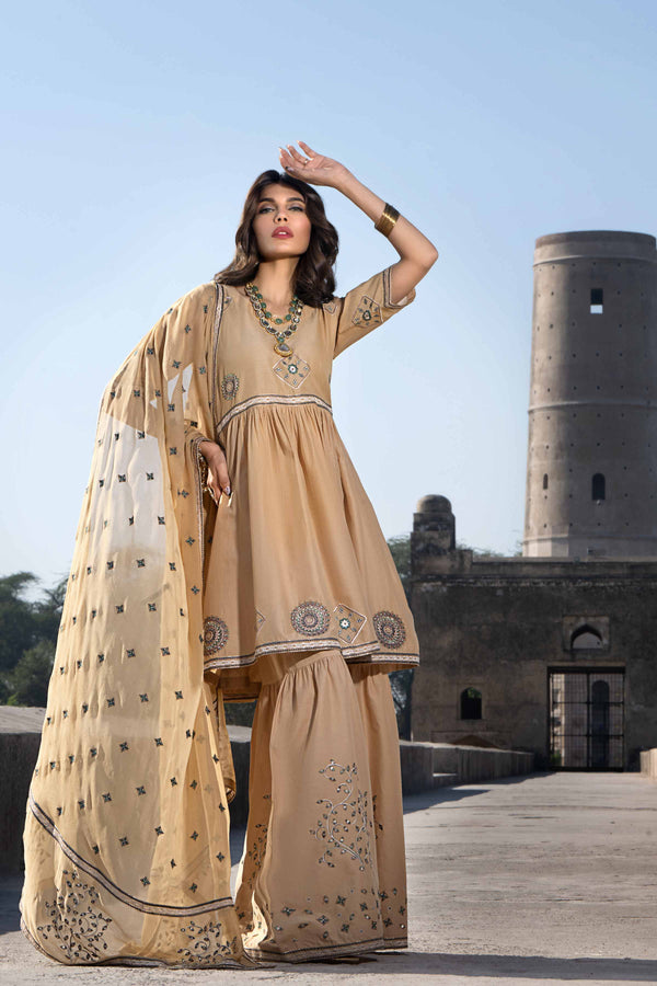 3 Piece - Printed Embroidered Suit - 42619949