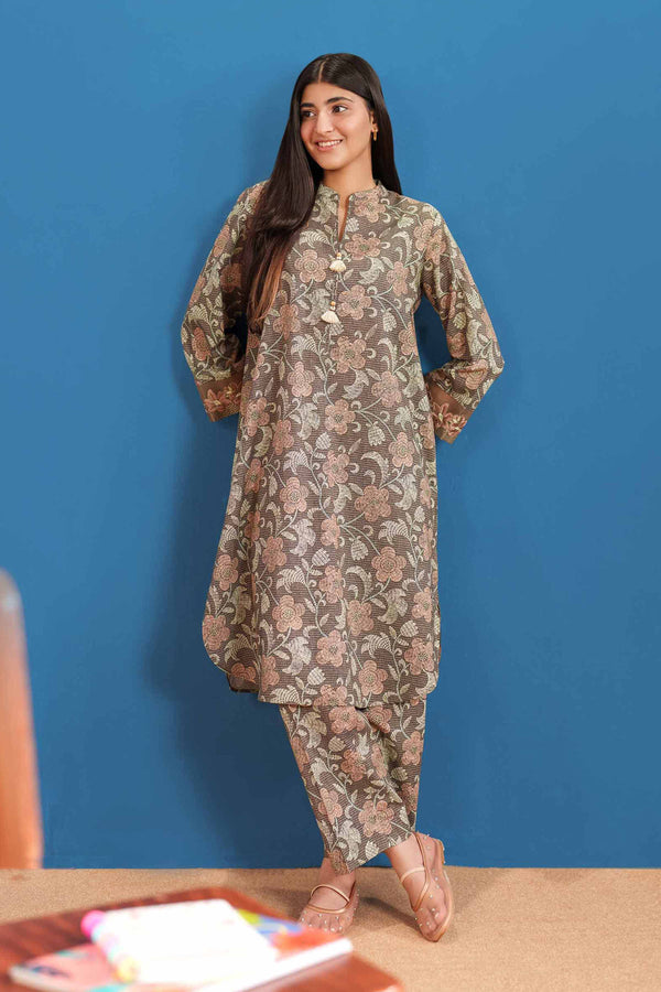 2 Piece - Printed Embroidered Suit - PE26-25