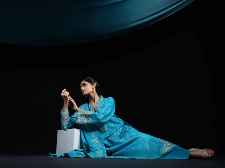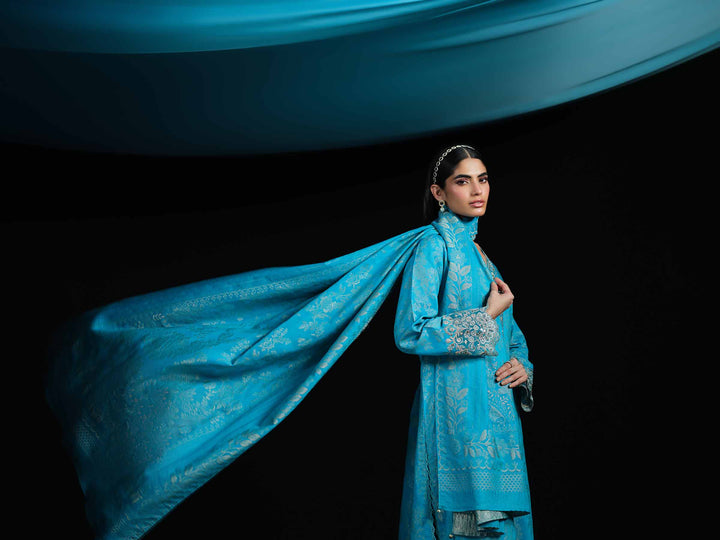 Heritage you can feel, comfort you can see with this embroidered three-piece from the latest unstitched Winter Collection.